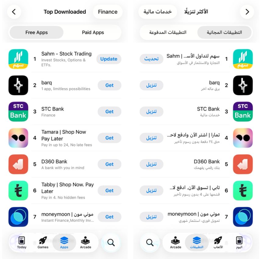 تطبيق سهم يتصدر المرتبة الأولى في فئة القطاع المالي على متجر التطبيقات السعودي مع ارتفاع ملحوظ في عدد المستخدمين