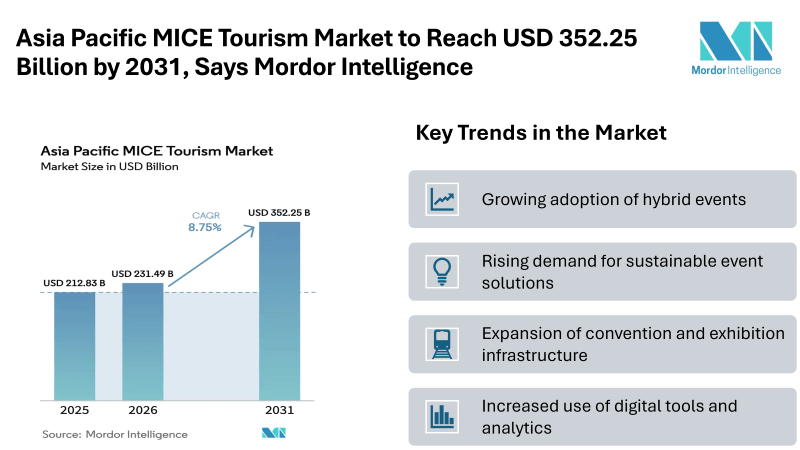 Econo Asia™ > Blog > News > Press Releases > Asia Pacific MICE Tourism Market to Reach USD 352.25 Billion by 2031, Says Mordor Intelligence